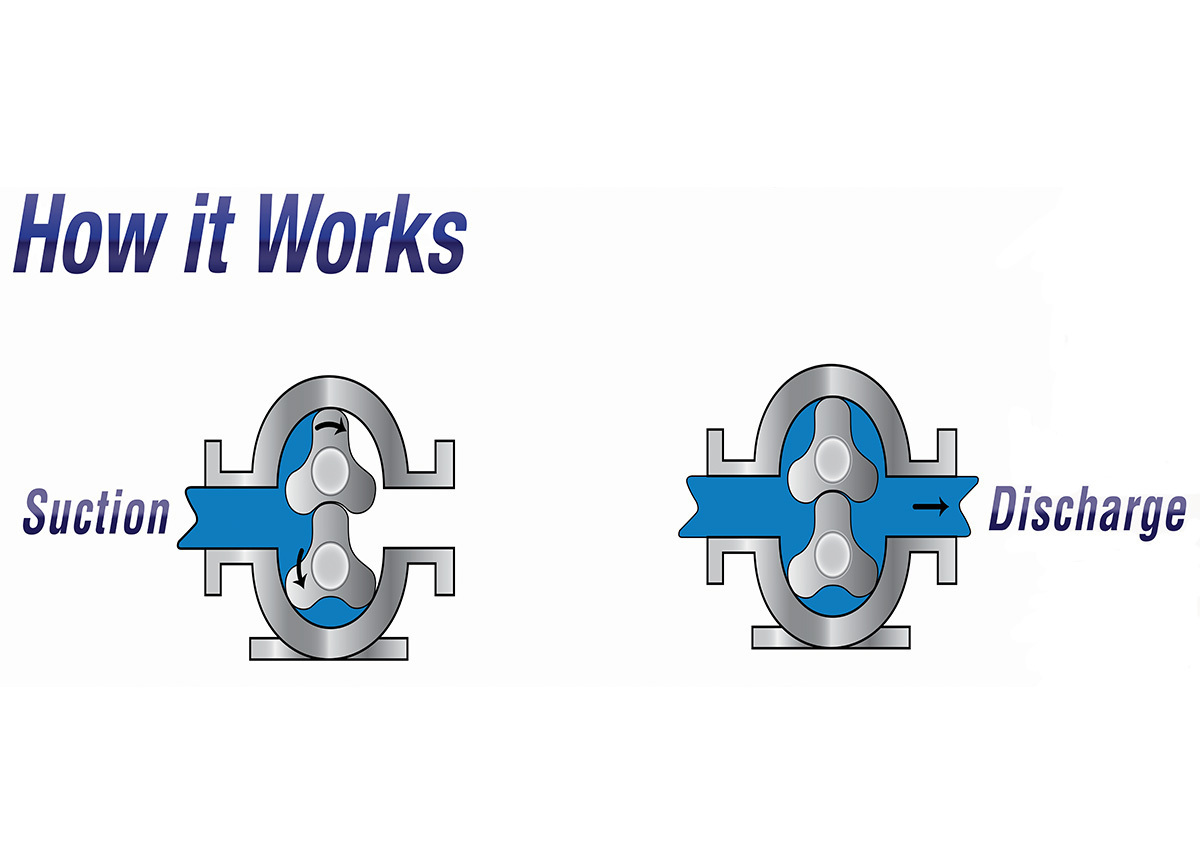 1. The lobes rotate around the circumference of the pump casing creating an opening at the suction port (inlet) as the lobes un-mesh. This generates a partial vacuum causing the fluid to enter the pump between the lobes.