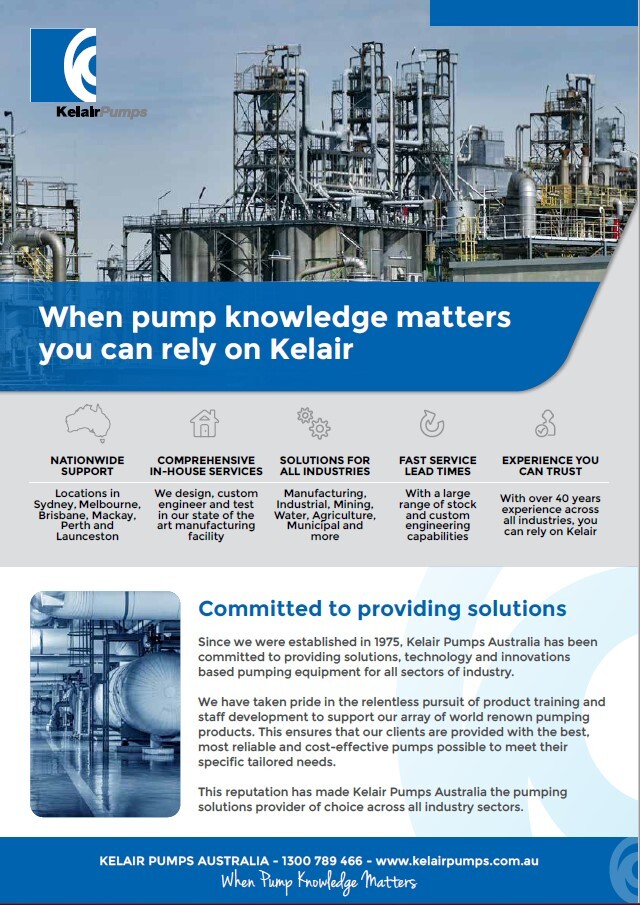 With a national presence and comprehensive services operating twenty-four hours, seven days a week, Kelair takes pride in its pump knowledge and ability to provide solutions to any pumping requirement within any industry. ‘When Pump Knowledge Matters’, the staff at Kelair Pumps are second to none.