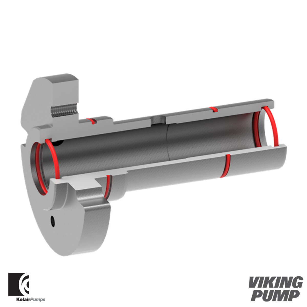 The O-Pro Barrier Seal can be used on any of the metallurgies available across the Viking Pump range to replace either mechanical seals or packing as long as your process liquid is compatible with hardened cast iron. It has a bushing clearance at the inboard end and wider clearance as you move outwards to allow for the barrier fluid to lubricate and cool the bush and O-rings.