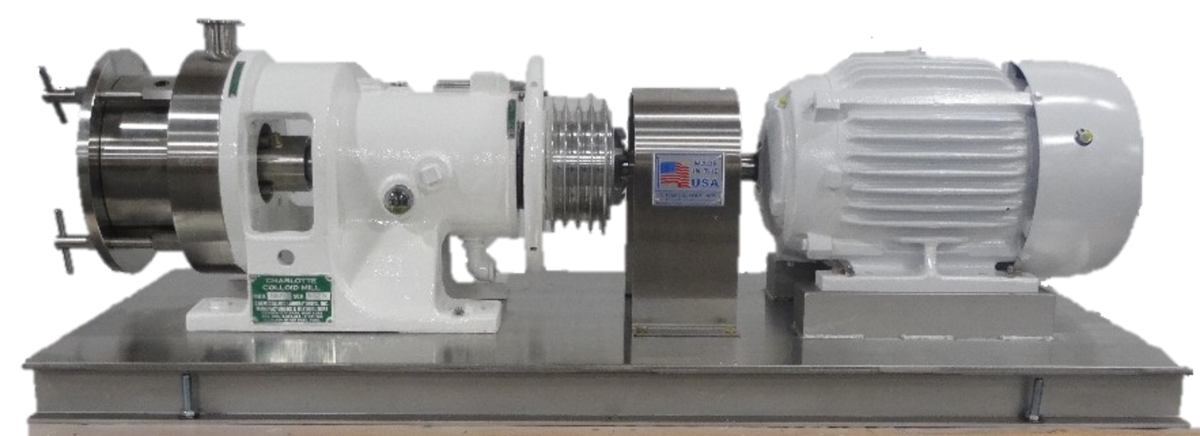 The Charlotte Mills unique hydraulic shear, along with mechanical shear, and centrifugal action production chamber allows the Charlotte to process the most viscous products. Product processing chambers are fully jacketed for optional heating or cooling. With easy maintenance and a non-aerating production chamber, the Charlotte Colloid Mill may be used for either batch or continuous processing. It can be cleaned in place.